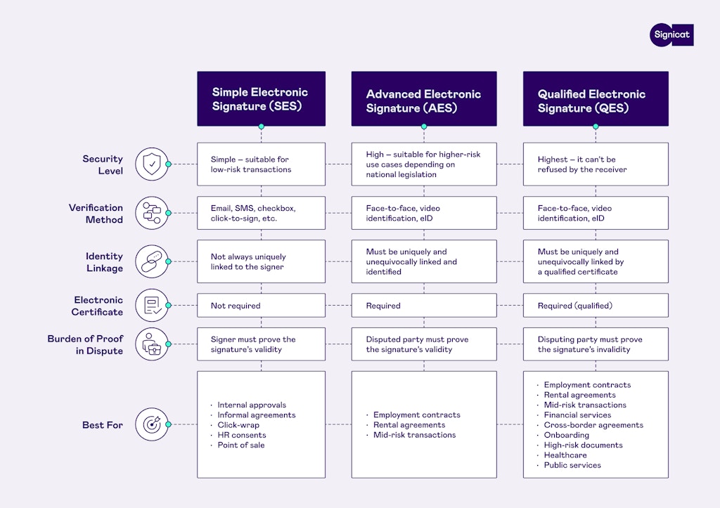 Además, no existe una forma de firma digital más elevada que la firma electrónica cualificada QES (tal y como especifica el artículo 27 de eIDAS), por lo que la normativa prohíbe a los Estados miembros de la UE exigir una firma de nivel superior.