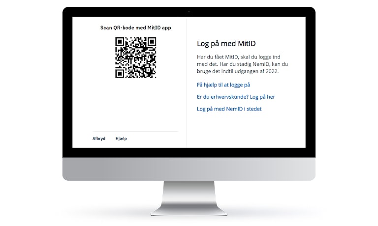 - Ved hjælp af MitID-appen scanner brugeren QR-koden, der vises på skærmen på den stationære computer.
