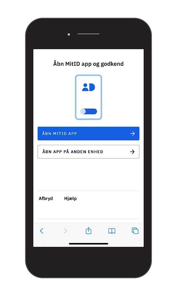 - Ved at klikke på knappen omdirigeres brugeren automatisk til MitID-appen for at fuldføre godkendelsesprocessen.