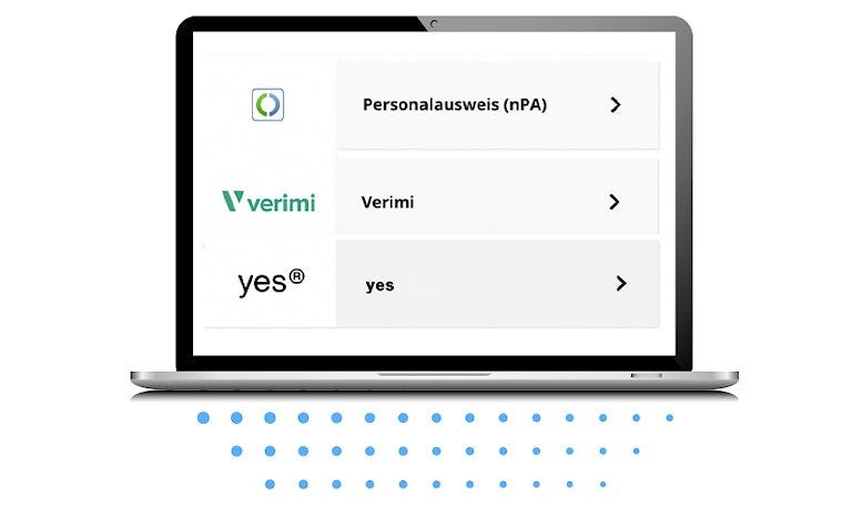 eID Verfahren sind mittlerweile aber auch in Deutschland verfügbar. Händler können eine Identifikation anhand der in Deutschland bereitgestellten ID-Methoden anbieten. Mit Hilfe der bekannten eIDs, wie dem neuen Personalausweis (nPA), Verimi oder yes® können sie die verifizierten Kundendaten einfach übernehmen.