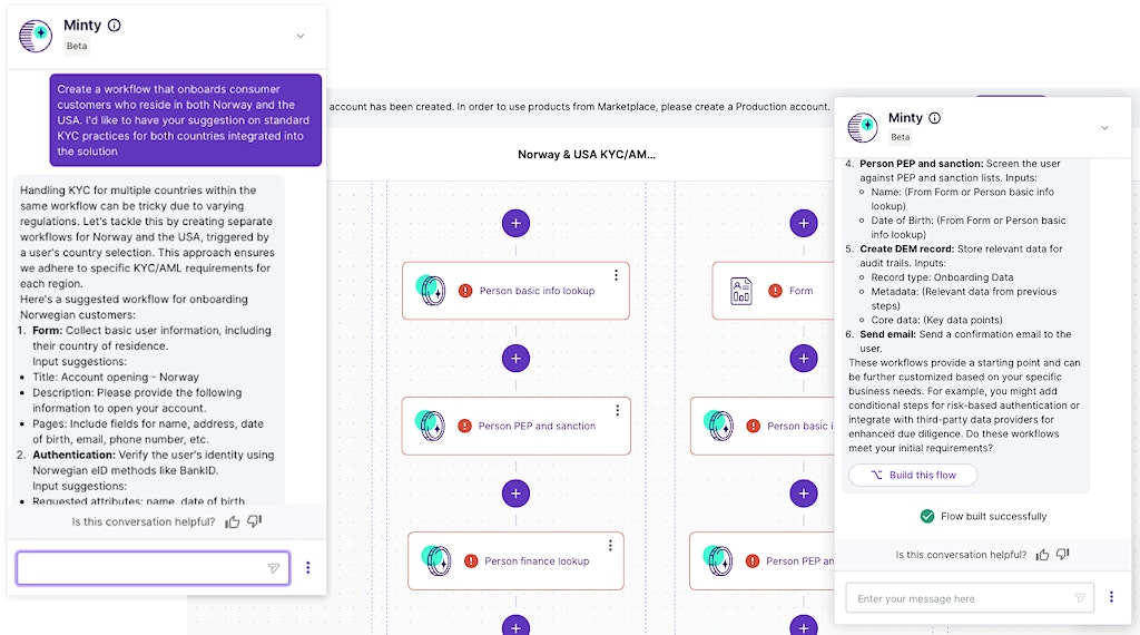 Building a KYC-compliant onboarding workflow using MintyAI in Signicat Mint.