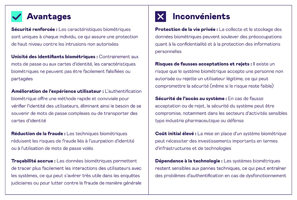 Quels sont les avantages et les inconvénients de l'authentification biométrique ?