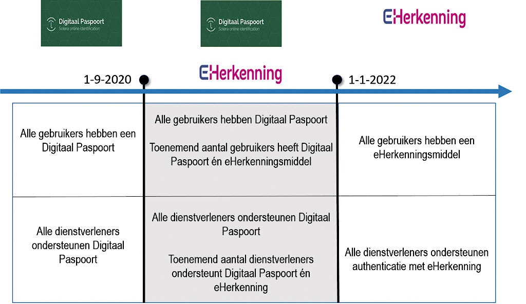 Vanaf 1 januari 2022 is het Digitaal Paspoort niet langer te gebruiken. Voor die tijd zullen gebruikers zoals intermediairs of financieel adviseurs moeten overstappen op EH3 om te kunnen blijven inloggen bij de online diensten van verzekeraars. Op dit moment is er sprake van een overbruggingsperiode. Niet alle gebruikers beschikken al over eHerkenning en niet alle online dienstverleners accepteren al eHerkenning. Signicat zorgt voor een soepel migratieproces voor zowel gebruikers als online dienstverleners. Hierdoor bent u altijd verzekerd van veilige toegang tot (uw) online diensten in de verzekeringswereld, ook tijdens de overbruggingsperiode!