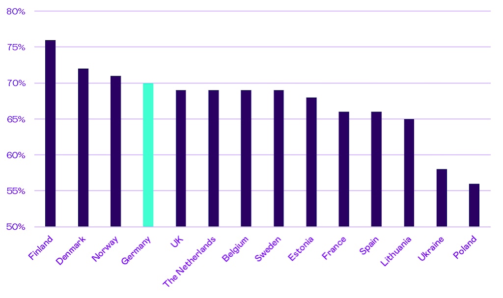 Interessanterweise ergab die Untersuchung ein „Erwartungs-Paradoxon“ beim Vergleich der Märkte. In jenen Ländern, in denen der Einstieg dank starker Verbreitung digitaler Identitätssysteme wie z. B. der BankID (eID-Methode in Norwegen & Schweden) einfacher und schneller gelingt, sind die Befragten nicht unbedingt zufriedener und brechen keineswegs seltener einen Antrag ab. Vielmehr waren die Verbraucherinnen und Verbraucher in „entwickelteren“ Märkten für digitale Identitäten anspruchsvoller, tolerierten seltener schlechte Erfahrungen und brachen in einigen Fällen eher einen Antrag ab als in weniger „entwickelten“ Märkten.
